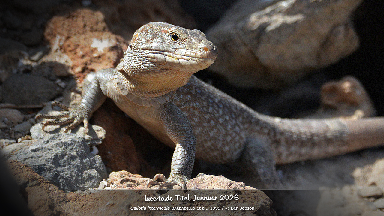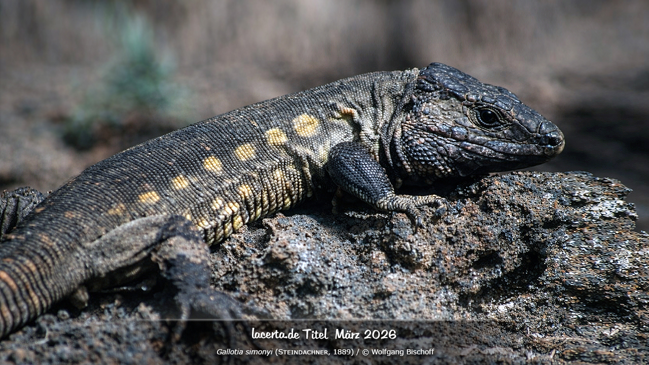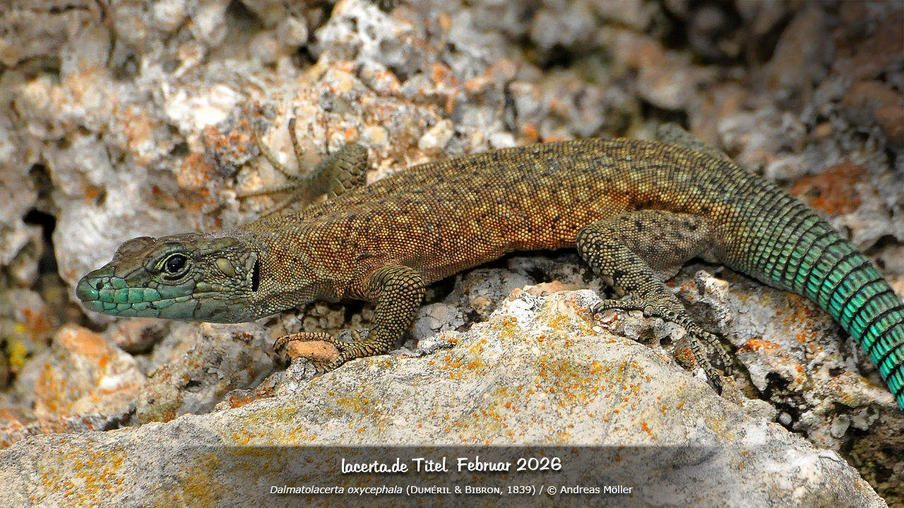 In addition to the printed magazine DIE EIDECHSE, the online magazine L@certidae and online articles, we also show our literature- and poster projects, including the reptile of the year 2006, the common lizard, reptile of the year 2011, the wall lizard, and reptile of the year 2020/21, the sand lizard. Information on the www.lacerta.de team and contributors can be found on the legal notice page. How we deal with your privacy can be read in our Privacy Policy. The remaining major topics are always accessible through the menu at the top of each page.