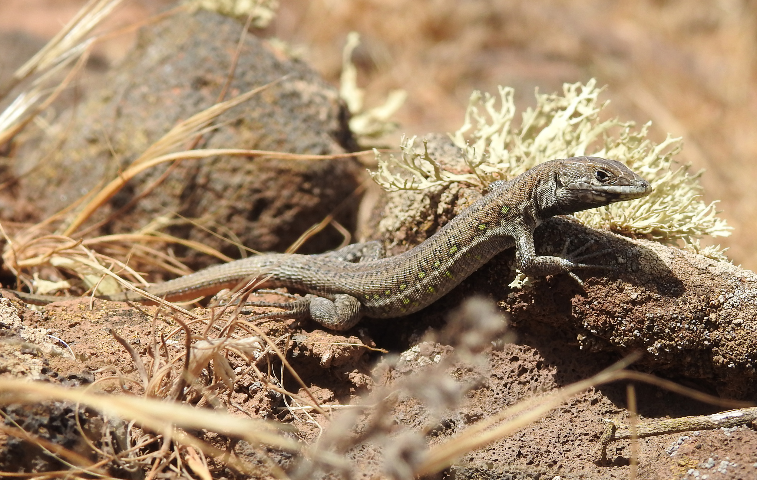 Peters, W.C.H. & Doria, G. (1882) - Note erpetologiche e descrizione di una nuova specie di Lacerta delle Isole Canarie. - Annali del Museo Civico de Storia Naturale di Genova, (1) 18: 431-434.  Bischoff, W. (1985) - Die Herpetofauna der Kanarischen Inseln. IV. Die Atlantische Eidechse, Gallotia atlantica (PETERS & DORIA, 1882). - herpetofauna, 7 (37): 15-24.  ×Die Beziehungen der kanarischen Eidechsen der Gattung Gallotia zu den anderen Lacertiden werden diskutiert. Die äußerlich klar zu erkennende Gallotia atlantica gliedert sich in 2 Unterarten G. a. atlantica und G. atlantica mahoratae. Der Lebensraum und die derzeit bekannten Daten über die Lebensweise werden beschrieben. Hinweise zur Haltung dieser Art im terrarium schließen den Beitrag ab. Gonzáles, P. & Pinto, F. & Nogales, M. & Jiménez-Asensio, J. & Hernández, M. & Cabrera, V.M. (1996) - Phylogenetic relationships of the Canary islands endemic lizard genus Gallotia (Sauria: Lacertidae), inferred from mitochondrial DNA sequences. - Molecular Phylogenetics and Evolution, 6 (1): 63-71.  ×Phylogenetic relationships among species and subspecies of the Canary Island endemic lizard genus Gallotia are inferred base on nucleotide sequence of fragments of 12S ribosomal RNA and cytochrome b mitochondrial genes. The four morphologically established species have also been recognized at the molecular level. Relative affinities among species follow an eatsern-western geographic transect. The nearly extinct species Galloti simonyi from the most western island of El Hierro is closely related to the common western species Gallotia galloti. The nearest branch to this pair is Gallotia stehlini from the central island of Gran Canaria, and finally, Gallotia atlantica from the two eastern and geologically oldest islands appears as the most distantly related species of the group. At the statistical level, four subspecies can be recognized in G. galloti, but only two in G. atlantica. Bischoff, W. (1998) - Gallotia atlantica (Peters & Doria, 1882) - Atlantische Eidechse, Purpurarien-Eidechse. - In: Bischoff, W. (Hrsg.): Handbuch der Reptilien und Amphibien Europas. Die Reptilien der Kanarischen Inseln, der Selvagens-Inseln und des Madeira Archipels. Wiesbaden (Aula). 236-264.  Molina Borja, M. & Rodriguez-Dominguez, M.A. (2004) - Evolution of biometric and life history traits in lizards (Gallotia) from the Canary islands. - Journal of Zoological Systematics and Evolutionary Research, Berlin, 42 (1): 44-53.  ×The aim was to study as to how biometric and life-history traits of endemic lacertids in the Canary Islands (genus Gallotia) may have evolved, and possible factors affecting the diversification process of this taxon on successively appearing islands have been deduced. To that end, comparative analyses of sexual dimorphism and scaling of different body, head and life-history traits to body size in 10 species/subspecies of Gallotia have been carried out. Both Felsenstein`s independent contrasts and Huey and Bennett`s `minimum evolution` analyses show that male and female snout-vent length (SVL) changed proportionally (sexual size dimorphism not changing with body size) throughout the evolution of these lizards and all within-sex biometric traits have changed proportionally to SVL. Life-history traits (size at sexual maturity, clutch size, hatchling SVL and mass, and life span) are highly correlated with adult female body size, the first two being the only traits with a positive allometry to female SVL. These results, together with the finding that the slope of hatchling SVL to female SVL regression was lower than that of SVL at maturity to female SVL, indicates that larger females reach maturity at a larger size, have larger clutches and, at the same time, have relatively smaller hatchlings than smaller females. There was no significant correlation between any pair of life-history traits after statistically removing the effect of body size. As most traits changed proportionally to SVL, the major evolutionary change has been that of body size (a ca. threefold change between the largest and the smallest species), that is suggested to be the effect of variable ecological conditions faced by founder lizards in each island.