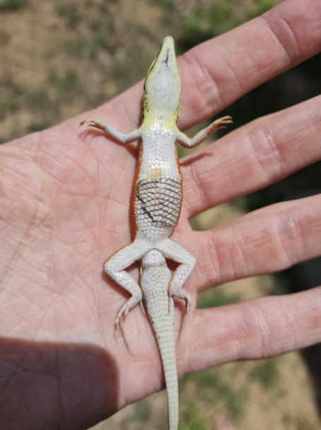 4b Short body and head; no dark black spots/blotches on chin shields or gular scales, clear white upper dorsolateral