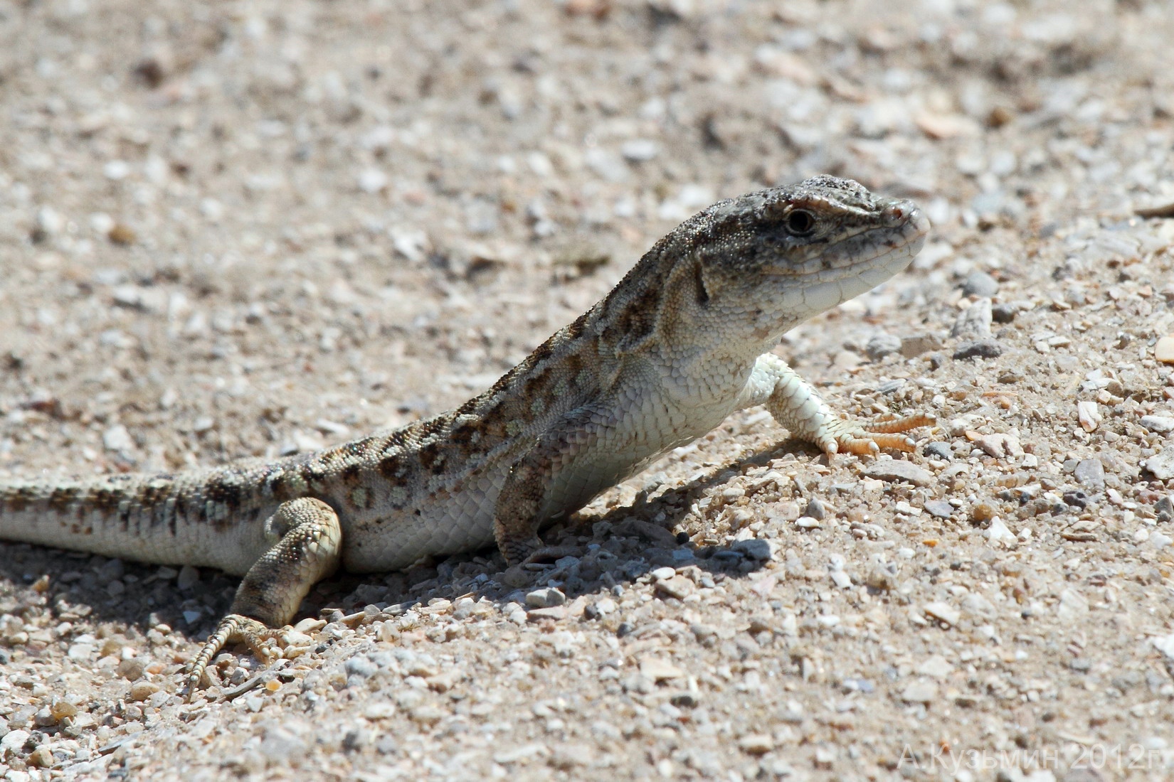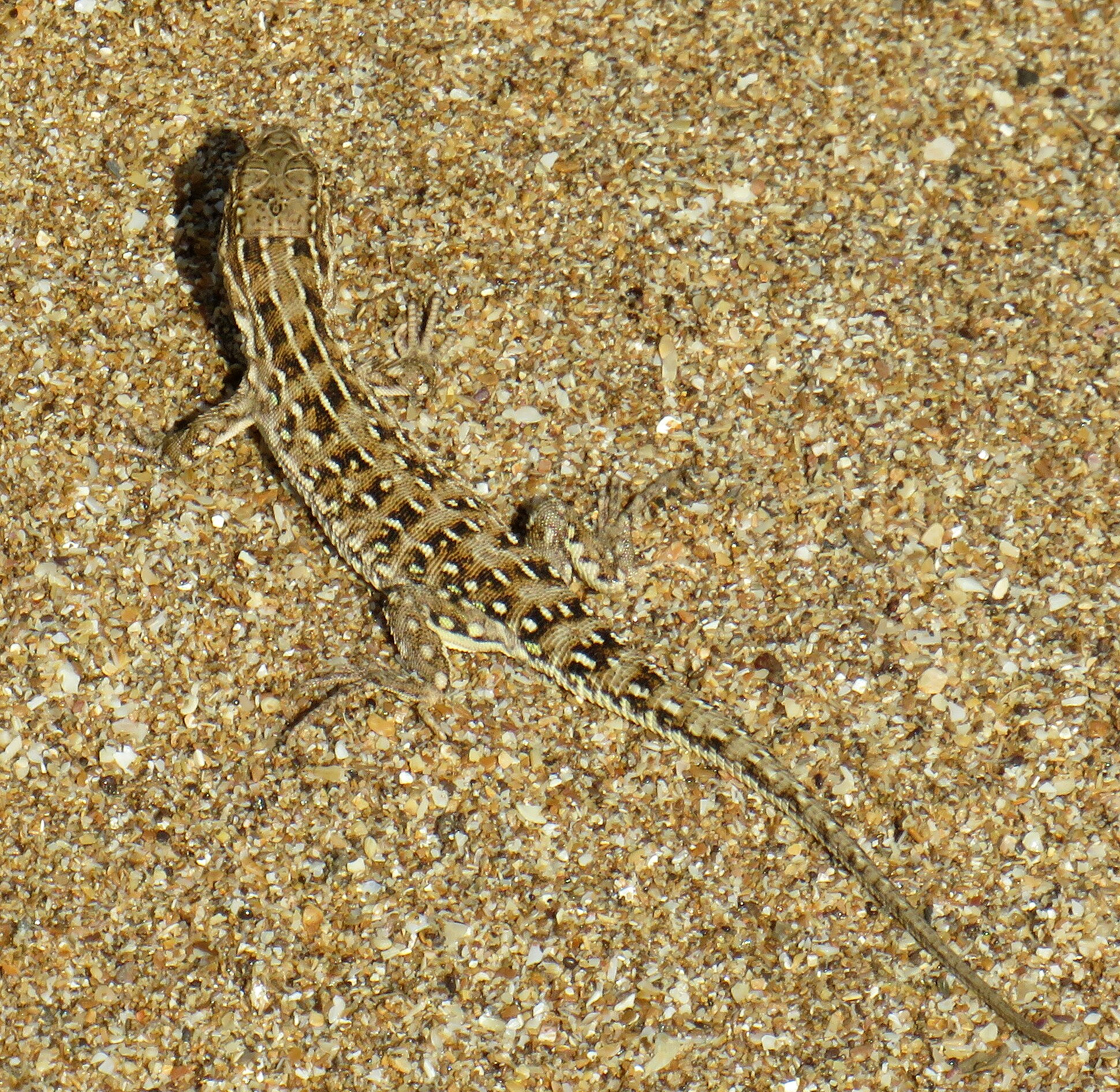 Pallas, P.S. (1773) - Description of Eremias arguta arguta. - In: “Reise durch verschiedene Provinzen des Russischen Reiches. Vol. 2”. - Kaiserlichen Akademie der Wissenschaften, St. Petersburg. 744 pp.  Bauer, A.M. & Günther, R. (1995) - An annotated type catalogue of the lacertids (Reptilia: Lacertidae) in the Zoological Museum, Berlin. - Mitteilungen aus dem Zoologischen Museum in Berlin, 71: 37-62.  ×A complete catalogue is provided for the type specimens of lacertid lizards in the herpetological collection of the Zoological Museum, Berlin, as of December, 1993. The collection contains a total of 514 type specimens, representing 63 taxa, of which 42 are currently regarded as valid at the specific or subspecific level. Types representing an additional four taxa appear to have been lost from the collection. The collections are especially rich in African lacertid types and in historically significant specimens collected early in the Nineteenth Century by Pallas, Eversmann, and Hemprich & Ehrenberg. Also present are the type series of many subspecies of Podarcis lilfordi and P. pityusensis described by Eisentraut. Chirikova, M.A. & Kolbinzev, W.G. (2003) - Morphologie und Unterartgliederung des Steppenrenners, Eremas arguta PALLAS, 1773, in Kasachstan. - Salamandra, 39 (1): 49-60.  ×Es wurde die externe Morphologie von Eremias arguta in Kasachstan untersucht. Analysiert wurden drei metrische und zehn meristische Merkmale sowie die Dorsalzeichnung von 206 Individuen aus 13 Populationen in Süd-, Südost- und Ost-Kasachstan. Ein Geschlechtsdimorphismus wurde bei den Merkmalen relative Schwanzlänge (♀♀ > ♂♂), Anzahl der Femoralporen (♀♀ < ♂♂) sowie Anzahl der Gularia entlang der Kehlmitte (♀♀ < ♂♂) festgestellt. Bei einigen Merkmalen (Anzahl Dorsalia, Gularia, Femoralporen, Schuppenzahl zwischen den beiden Femoralporenreihen) besteht eine klinale Variation. Die meisten der Stichproben weisen ein Zeichnungsmuster aus großen, weißen, unregelmäßigen Flecken und einer dunklen Querstreifung auf. In Ost-Kasachstan treten dagegen Individuen auf, die kleine weiße Flecken und eine dunkle unregelmäßige zusammenfließende Querstreifung besitzen. Die Tiere der südlichsten Stichproben haben dagegen längliche weiße und unregelmäßige schwarze Flecken. Die systematische Position der ost-kasachischen Populationen ist nicht deutlich und benötig weitere Untersuchungen. Südost-kasachische Populationen gehören dagegen zu E. a. potanini, süd-kasachische Populationen zu E. a. uzbekistanica. Poyarkov Jr., N.A. & Orlova, V.F. & Chirikova, M.A. (2014) - The mitochondrial phylogeography and intraspecific taxonomy of the Steppe Racerunner, Eremias arguta (Pallas) (Lacertidae: Sauria: Reptilia), reflects biogeographic patterns in Middle Asia. - Zootaxa, 3895 (2): 208-224.  ×Steppe racerunner, Eremias (Eremias) arguta, is one of the most widespread species of the Asian racerunners (genus Er-emias). Several subspecies were traditionally recognized however, morphological variability is so high that delimitation of these subspecies was always problematic. Here we present a phylogenetic hypothesis for this species based on cyto-chrome b sequences (55 samples from 35 populations, 900 bp partial sequences), infer it biogeography and the revise its subspecific structure. Six major phylogenetic lineages were revealed. The southernmost populations (E. a. uzbekistanica) from Uzbekistan form a clade together with the Issyk-Kul Lake subspecies (E. a. darevskii) based on both molecular and morphological evidence. Within more northern populations, there is a split between populations from Northern Caucasus, Europe and Western Kazakhstan (E. a. deserti) and Central and Eastern Kazakhstan populations (E. a. arguta). Transcau-casian (E. a. transcaucasica) steppe racerunners are grouped with Middle Asian populations. Finally, the easternmost samples, assigned to “E. a. potanini” are nested within the E. a. arguta clade. Populations from the Ili River Valley form a separate lineage sister to the clade joining all other E. arguta lineages and might represent a yet undescribed taxon. Spe-cies distribution in relation to historical biogeography of Middle Asia is discussed.